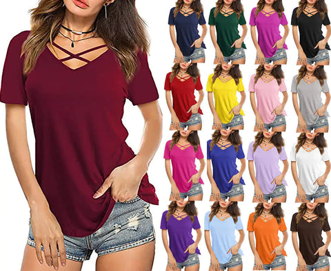 Introducing our Front Cross Short Sleeve top - a stylish and versatile addition to your wardrobe. Featuring a unique front cross design, it adds a touch of elegance to any outfit. The short sleeves provide a comfortable and breathable fit, perfect for warm weather. Made from high-quality materials, it offers durability and long-lasting comfort. Whether you're dressing up for a special occasion or keeping it casual, our Front Cross Short Sleeve top is a must-have. Upgrade your style with this trendy and chic piece.